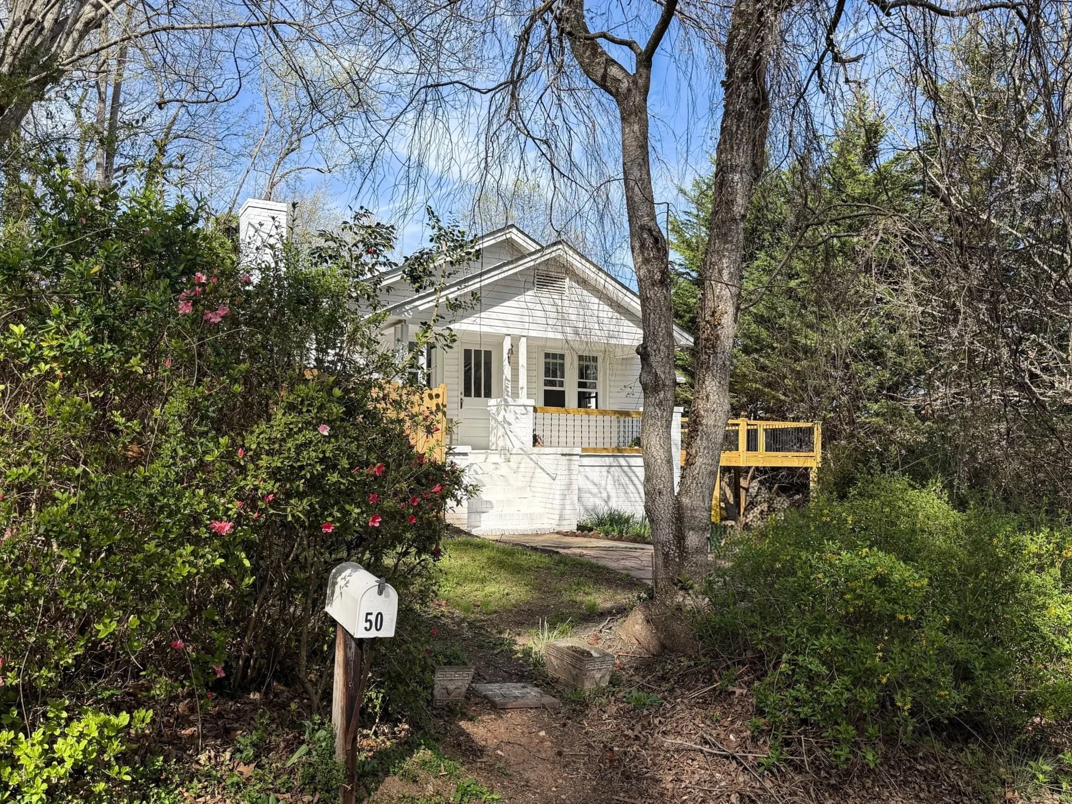 CUTE 2/2 newly renovated, take the sidewalk to downtown Tryon. Big fenced yard. New kitchen and baths. Put out your rockers on the front porch, feel the fresh night air and listen to the silence. This adorable granny cottage was built in 1936 before air conditioning, so it was sited on a nice hill to catch the mountain breezes. What a great spot. Three minutes to town, Saluda Grade Rail Trail access is in the little neighborhood. Expansive deck off the owners suite. Easy one level layout with an extra downstairs room perfect for an office. Original refinished wood floors.. Roof, appliances, fixtures, most windows and water heater are new.